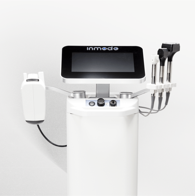 인모드 시술은 MINIFX와 FORMA 두 가지 방법을 통해 진행됩니다. MINIFX는 고주파(RF) 에너지와 고전압 전기자극(HVP)을 피부층에 진공으로 전달하여 근막(SMAS)층에 작용시켜 불필요한 지방세포 사멸을 유도하고, 볼살, 심부볼, 이중턱 개선을 통해 탄력 있는 V라인 리프팅 효과를 제공합니다. FORMA는 고주파 에너지를 진피층과 표피층에 조사하여 콜라겐 생성과 엘라스틴 재생을 촉진시키며, 이를 통해 피부 탄력과 결 개선, 잔주름 감소에 도움을 주어 매끈한 피부를 기대할 수 있습니다.
