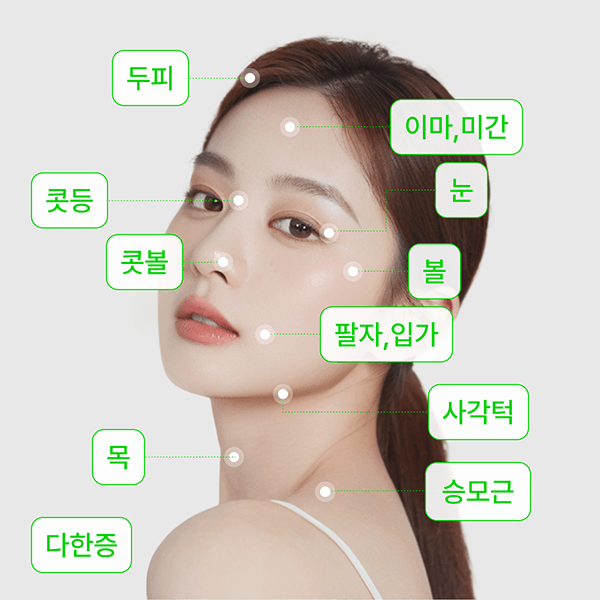 그 외 가능한 부위로 스킨 전체 및 승모근, 두피가 있습니다.